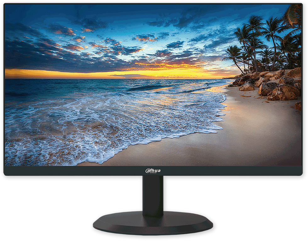 Barevný širokoúhlý LCD monitor 22" pro trvalý provoz 24/7, Full HD rozlišení (1920 x 1080 px), ultra úzký kovový rámeček, antireflexní povrch, HDMI a VGA vstup, reproduktory, VESA uchycení. Nízká spotřeba energie. Vhodný pro kamerové systémy.