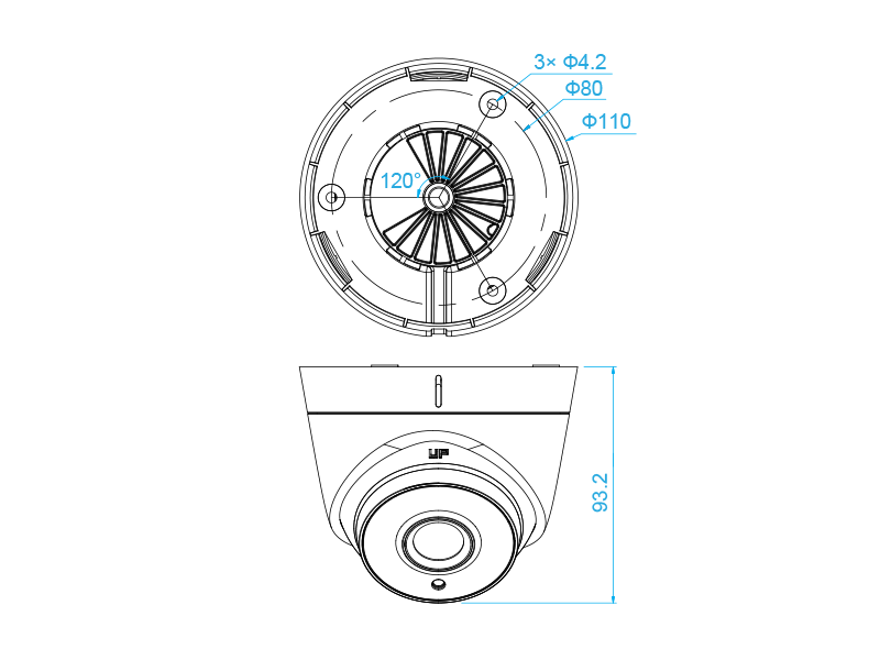 Důležité vlastnosti: 1 megapixel progressive scan CMOS s maximálním rozlišením 1296x732 objektiv se záběrem 92° světelná citlivost 0,1 lux 3-axiální nastavení napájení 12VDC