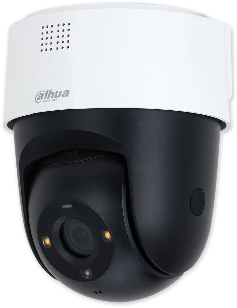 Venkovní IP PT kamera s aktivním zastrašováním, integrovaný mikrofon a reproduktor, Starlight citlivost, 5 Mpix rozlišení, fixní objektiv 4 mm (úhel 80°), IR a bílé LED 30 m. Ochrana perimetru s detekcí člověka. Otáčení kamery 345°, naklápění 0° až 80°. Napájení PoE nebo 12VDC. Krytí IP66.Ukázková videa výrobce Dahua na youtube.