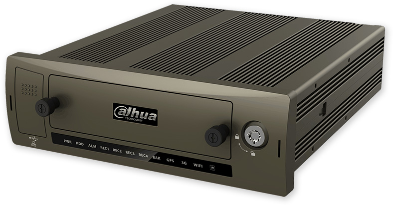Speciální 4 kanálové NVR určené pro montáž a provoz ve vozidlech a prostředcích hromadné dopravy, GPS přijímač, 3G/4G kominukace, WiFi. Vlastní PoE napájení kamer. VGA a BNC výstup, audio, ovládání USB myší. Přístup přes webové prohlížeče, Smart PSS software a mobilní aplikaci DMSS. Lze zabudovat jeden HDD 2,5" disk o kapacitě až 2 TB. Napájení 6 až 36 V=/9 W. Ukázková videa výrobce Dahua na youtube.