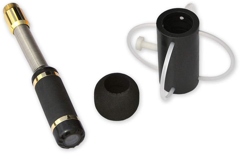 Zařízení je dodáváno v plastovém army kufru. Zobrazovací jednotka 7“ je umístěna v horním víku. 40m kabel je obalený skelným vláknem (pružný, pevný).