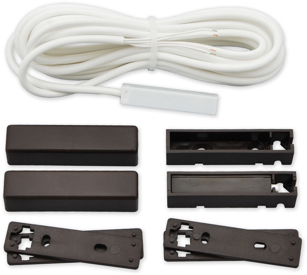 Čtyřdrátový magnetický kontakt plastový, určený pro povrchovou montáž. Při pokusu o překonání magnetu se rozepne ochranná smyčka - tamper. Součástí balení je montážní podložka.