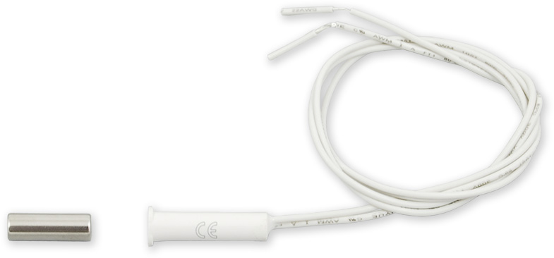 Dvoudrátový závrtný magnetický kontakt určený pro zápustnou montáž do oken, dveří atd.
