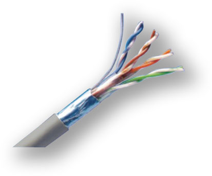 Datový metalický kabel stíněný, typ lanko, určený pro horizontální rozvody strukturované kabeláže. Tento kabel splňuje požadavky defi nované v mezinárodních standardech TIA/EIA 568B, ISO 11801 pro CAT.5e.