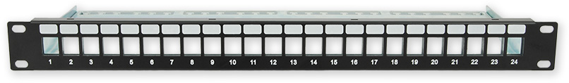 Prázdný kovový patch panel 1U do 19" datového rozvaděče. Patch panel má 24 pozic pro umístění keystonů. Volbou keystonu se volí i CAT (5E, 6, 6A).