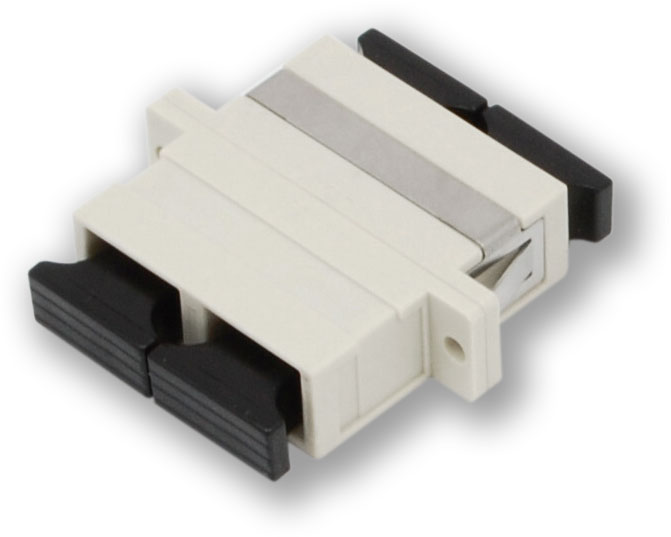 SC multimode duplexní spojka pro propojení například optického pigtailu s optickým patch kabelem.